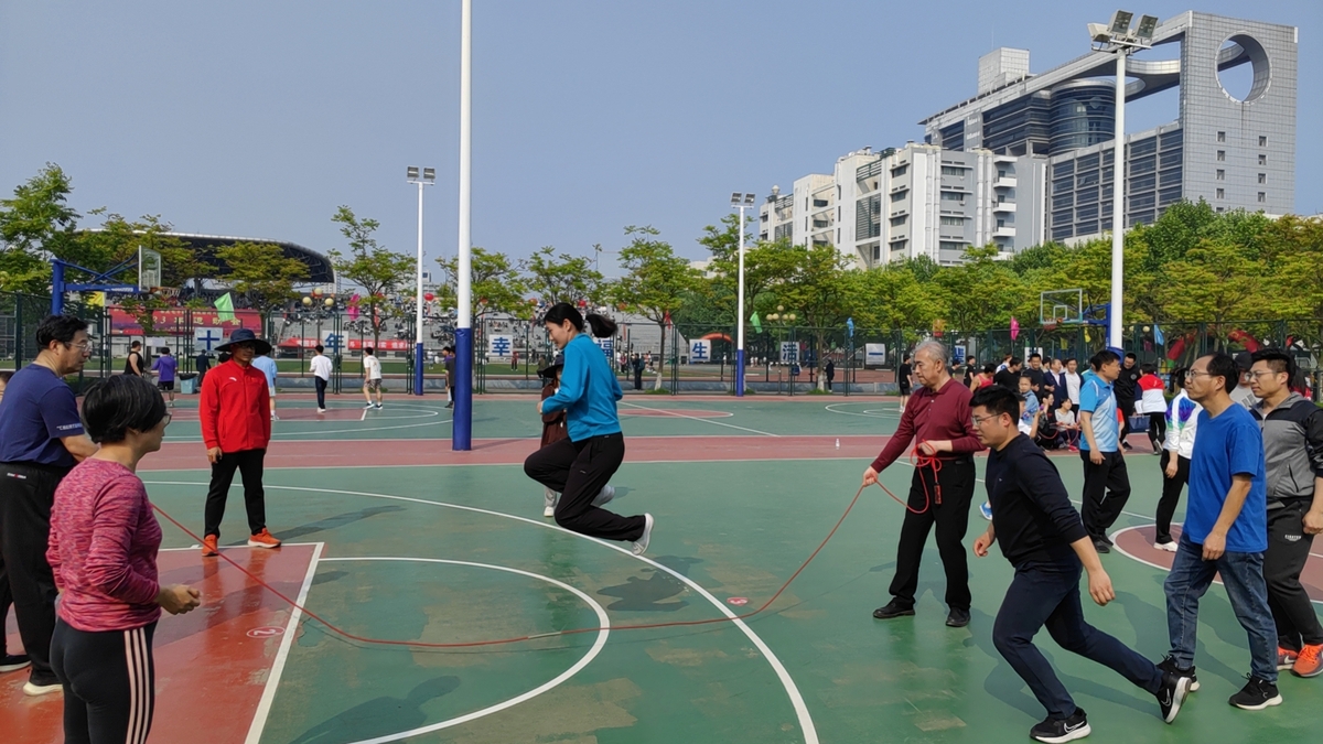 趣味运动会8字跳绳合影,比了两次,不容易!