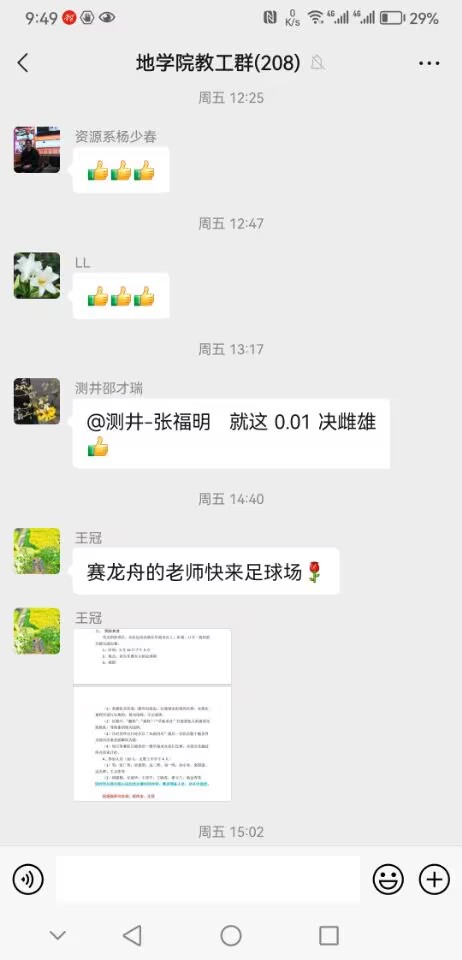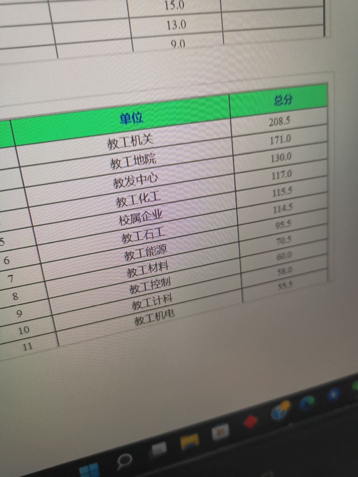 两天的教职工田径运动会和趣味运动会圆满闭幕了,尽管我们面临男甲核心队员退休、升组人员很少、不少老师科研出差、博士面试时间冲突、两个运动会时间叠加等较多困难,经过全体运动员顽强拼搏,我们仍以很大的优势战胜化院、石工等职工人数比我们多的单位,保持教学院部第一!趣味运动会也取得全校第二的优秀成绩!今年成绩不容易,在这里学院工会要感谢全体运动员,感谢院工会全体服务人员,感谢院系领导,感谢具有优良文体传统的全体地院人!