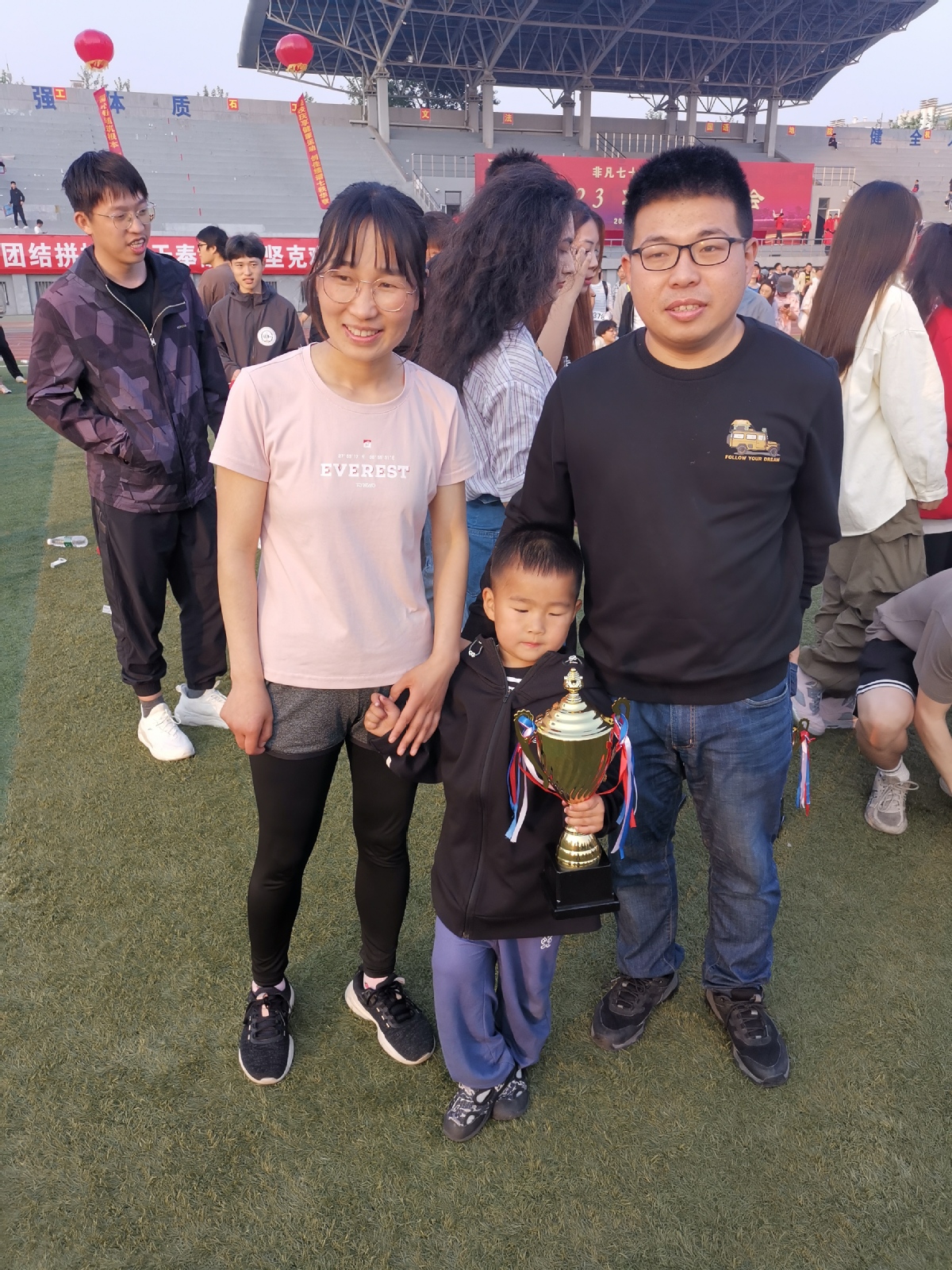 远二辉孩子都带上号码布了!远二辉100、200、接力都是主力,还是去年篮球赛冠军成员,为了学院体育工作做出了很大贡献,去年被授予校优秀工会会员,这是科研助理里不多的。