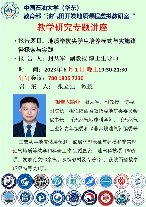 【预通知】教育部“油气田开发地质课程”虚拟教研室活动-教学研究专题讲座