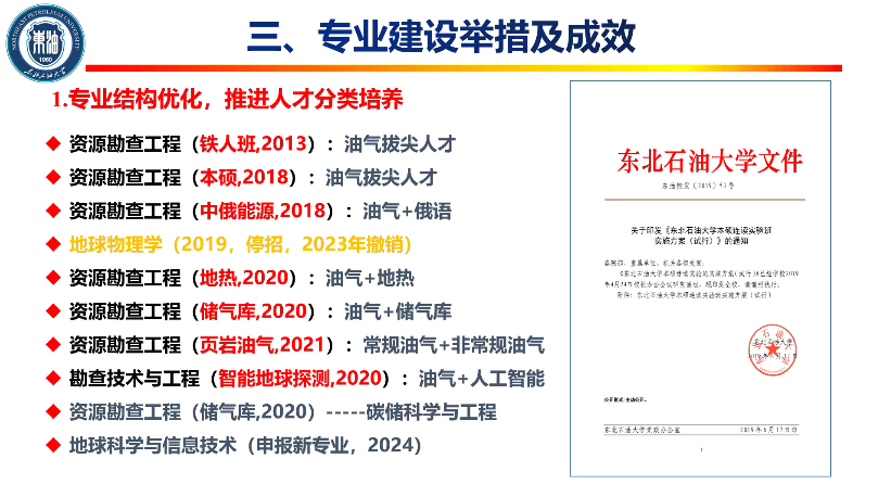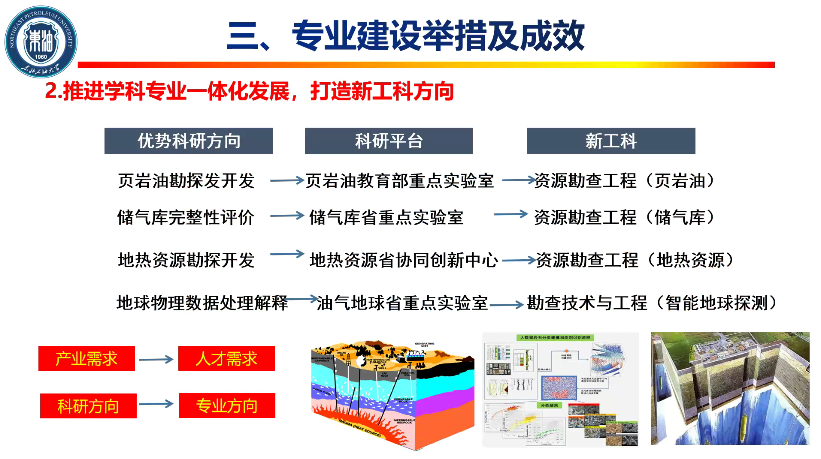 2023年9月28日,资源勘查工程专业教育部虚拟教研室举办了一流专业建设专题论坛。东北石油大学地球科学学院副院长朱焕来副教授作“一流专业建设探索及实践”专题报告,东北大学资源与土木工程学院地质系主任陈家富教授作“激发资源勘查工程专业学习兴趣的探索与实践”专题报告。报告会由永利yl23411集团院长刘华教授和副院长张宪国教授主持。