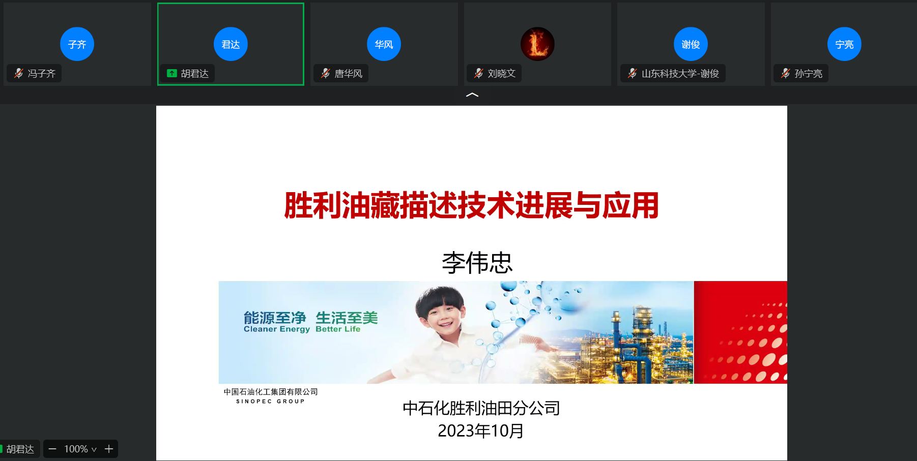 2023年10月15日上午,地学院、教育部"油气田发地质课程虚拟教研室"举办线上、线下行业前沿专题讲座,邀请了中国石化胜利油田勘探开发研究院首席专家李伟忠研究员作题为《胜利油藏描述技术进展与应用》的专题讲座,资源系部分教师、地学院地质资源与地质工程博士研究生、硕士研究生,以及来自全国十余所高校、油田科研院所100余人参加了线上、线下会议,教育部虚拟教研室主任、资源系主任张立强教授主持会议。