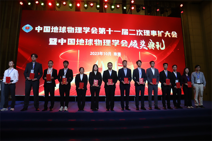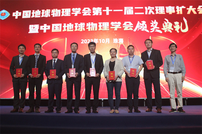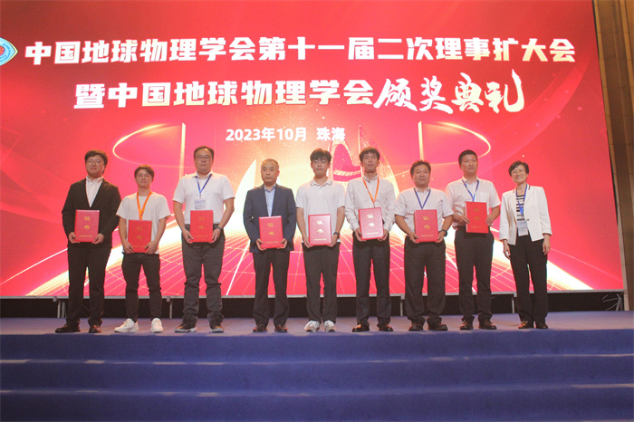 在年会上,中国地球物理学会召开了第十一届二次理事扩大会议暨中国地球物理学会颁奖典礼,印兴耀教授、宗兆云教授、曹丹平教授作为代表参加了理事扩大会议。在颁奖典礼上,我校印兴耀教授团队完成的项目“裂缝型油气储层地震预测理论及关键技术”获2023年中国地球物理科学技术进步一等奖,符力耘教授参与完成的项目“致密油气储层岩石物理模型与大面积地震检测技术”获2023年中国地球物理科学技术进步二等奖。杨继东教授获傅承义青年科技奖,李坤副教授获刘光鼎青年科技奖,我院博士毕业学生程广森获2023年中国地球物理学会优秀博士论文。我院学生张向智、张纪伟、陈宣好、燕卓麒组建的团队获第八届“创新杯”全国大学生地球物理知识竞赛奖地震测井组一等奖;王冰、张浩、罗子良、赵杰组建的团队获第八届“创新杯”全国大学生地球物理知识竞赛奖重磁电组三等奖。我院学生宋磊、于松鹤等获2022年地球科学联合学术年会优秀学生论文。