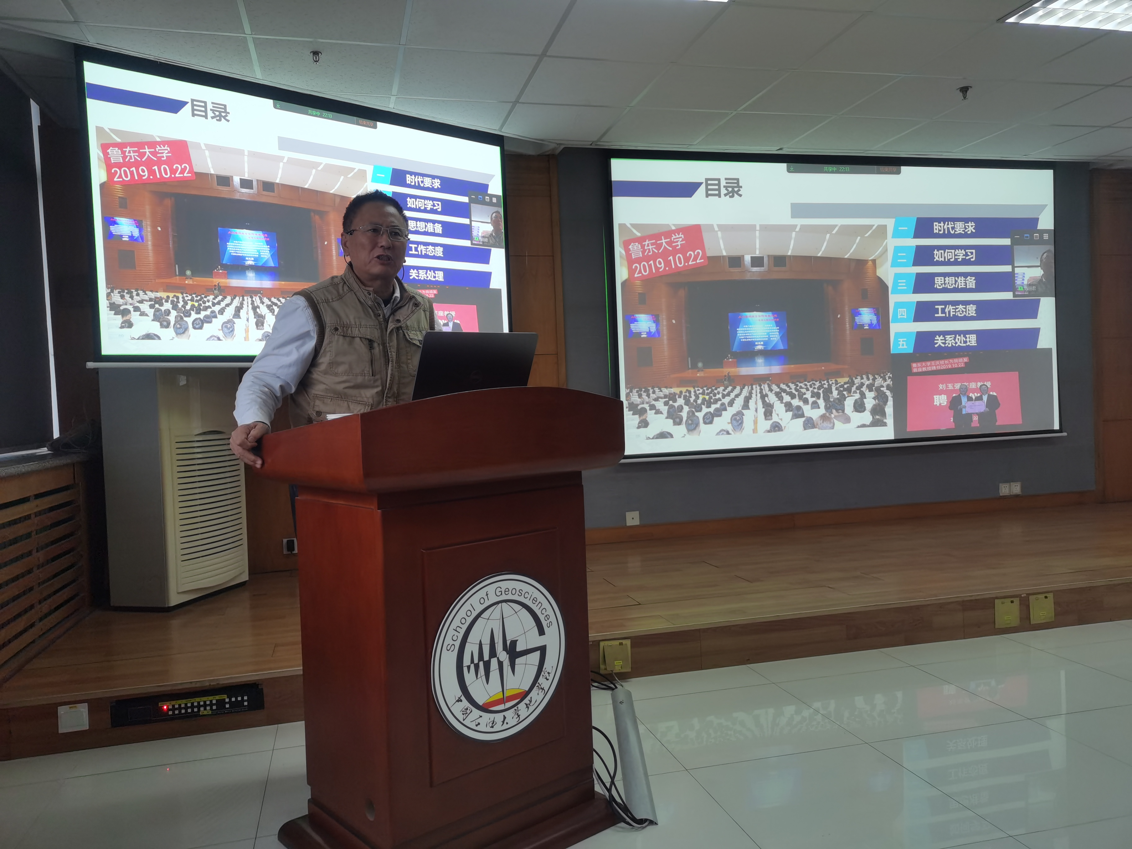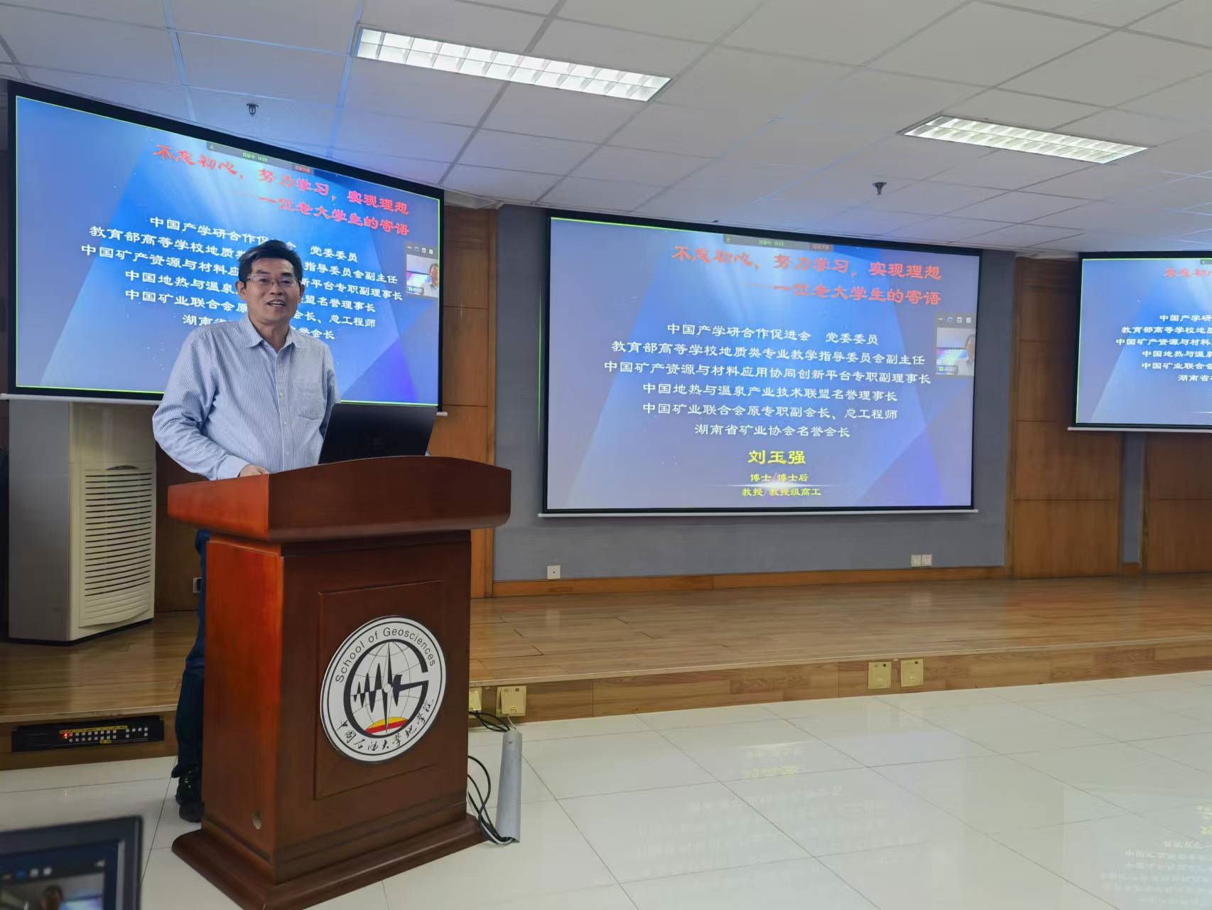刘玉强教授从学习方法、思想准备、工作态度、关系处理等几个方面向在场的师生深刻寄语,他表示在学校里学习,需要把握重点笔记、提前预习、扩展广度和延伸深度几个方面,同时通过哲学思想学习,提升个人思辨能力,更加深入认识事物本质规律,而越喜欢读书的人,越有实力去到更广阔的平台,越有机会去选择自己想要的生活。而在思想准备方面,刘玉强教授嘱托在场学生,一定要做个正派的人、正能量的人,事物好坏要通过分析才知道对错;在走上工作岗位开始时,做事情要慢慢做,做了就要做好学会。他告诫同学们,要关心国家大事,领会中央精神,将来就应该用行动报效党和国家才对;他鼓励同学们要培养自己勇于创新、敢于创业的决心和信心,考虑困难,但不惧怕困难,要始终相信自己,勇敢前行,生活的美好定能与你不期而遇,并且在日常生活中要用善良、包容、宽容对待人,要用欣赏、学习、理解的眼光看待人。在工作态度方面,刘玉强教授表示,地质科学是最古老的学科之一, 涉及人类生存空间的方方面面,我们应适应新时期对于地质人的要求,未来可大有作为,在单位要以勤为先,努力增长知识,增长经验和才干,提高动手能力,增强巩固学到的知识。他强调,对待自己的技术业务要有工匠精神,刻苦专研,精益求精,追求完美,持之以恒。