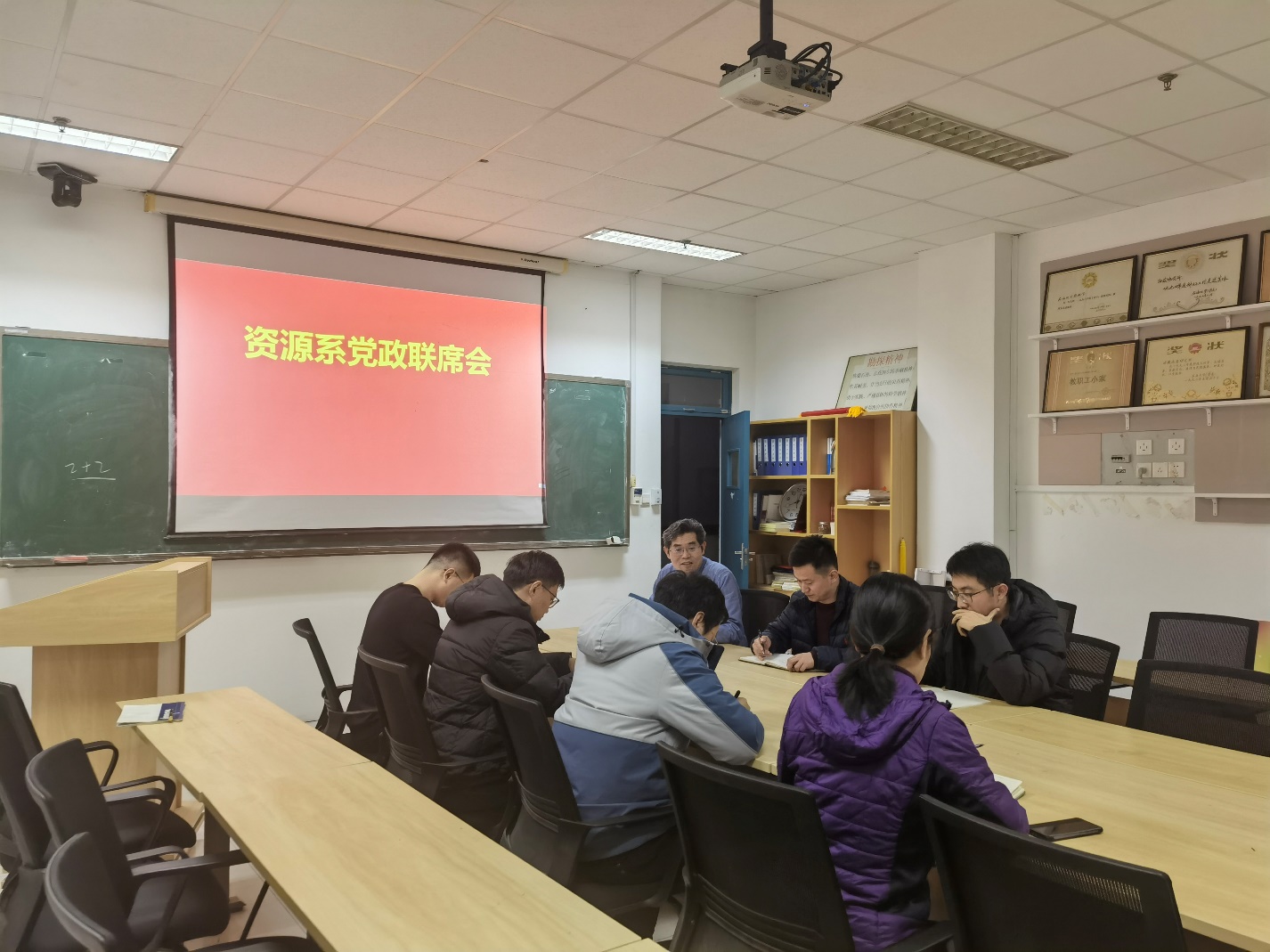 2023年12月21日下午,资源系召开党政联席会,重点讨论年底的党建工作,会议由支部书记张立强教授主持。
