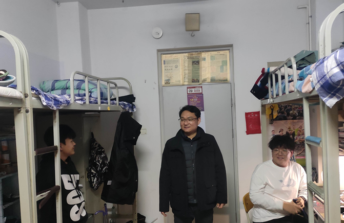 辅导员老师在宿舍进行卫生安全检查,与学生交流在校学习生活情况