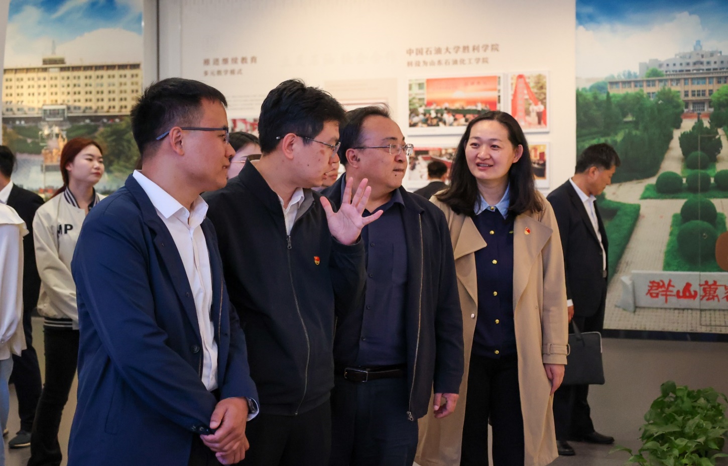 胜利油田李政一行在永利yl23411集团党委副书记郑珊珊等人的陪同下参观了校史馆。