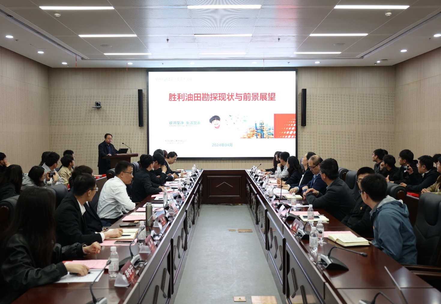 会上,胜利油田勘探开发研究院首席专家李政对胜利油田勘探及能源前景展望进行分享,重点讲解了断陷盆地勘探过程中用到的一些复杂技术,让在座的学生党员清楚的了解到勘探一线遇到的难题,激起大家为祖国能源事业奉献的信心与决心!胜利油田党委组织部高级主管李国栋介绍了胜利油田基本情况、人才需求和校园招聘流程等,对研究生关心的问题进行了详细的解答,提出要持续深化合作交流,期待党支部开展更高层次联合共建,优势互补、共同发展,期待石大学子选择“胜利”。