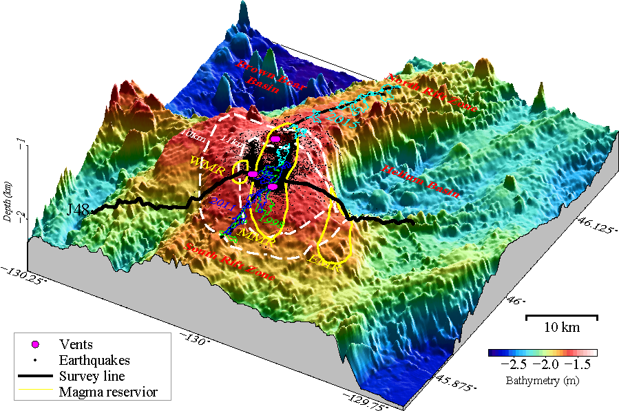 图1.Juan De Fuca 洋中脊海底火山地质概况