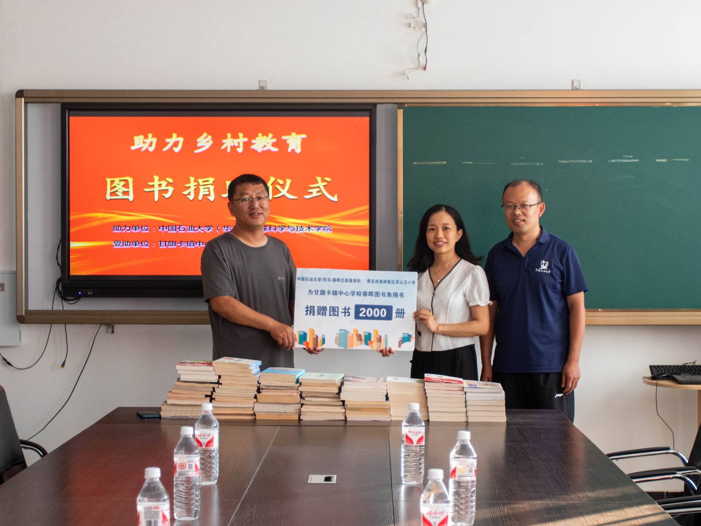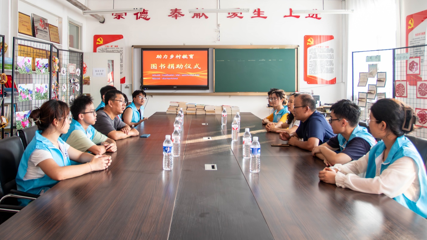 7月31日下午,师生一行10人来到甘旗卡镇中心学校进行图书捐赠仪式。甘旗卡镇中心学校校长杨建,学校挂职干部、驻村第一书记李广磊,学院辅导员杨建敏等出席仪式。杨建敏代表学院将春晖志愿服务队募捐的2000册图书捐赠给甘旗卡镇中心学校,杨建校长代表全校师生表达了真挚的感谢。他表示,“捐赠的2000本图书极大的帮助了我校的图书馆建设,有效的缓解了我校教育资源短缺的困境,也让我校师生感受到了贵校送来的温暖与关怀。”捐赠仪式上,李广磊指出教育公平是社会公平的起点,关乎人民的幸福感与获得感,让每一个孩子享受优质公平的教育,是师生们的共同心声,后续学校将继续深入贯彻党中央坚持以人民为中心、推动教育持续高质量发展的理念,积极动员师生力量投入帮扶工作,发挥学院人才资源优势,建立健全的暑期支教合作平台,助力科左后旗地区的教育发展。
