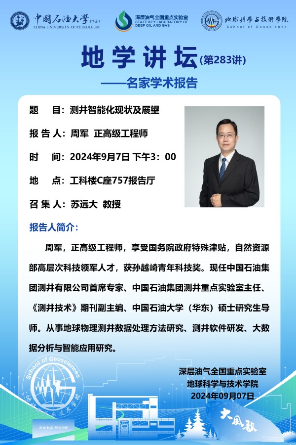【地学讲坛第283讲】关于周军 正高级工程师《测井智能化现状及展望》学术报告的通知