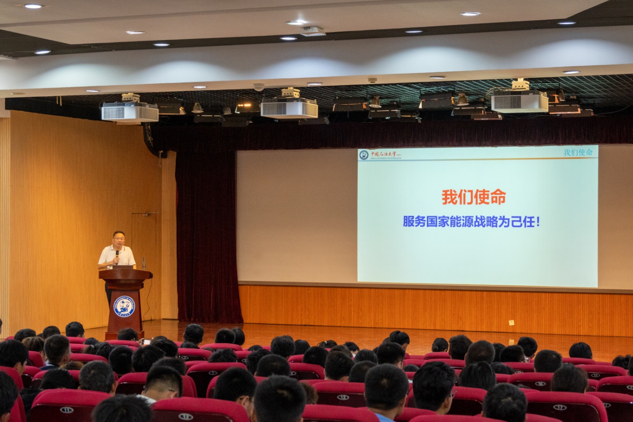 “如何无悔‘石’代选择、成就‘油’为人生?希望同学们要融石大,适应大学生活;定好位,学会自学能力;强身心,坚持全面发展。”9月22日晚,永利yl23411集团2024级新生“开学第一课”在逸夫礼堂拉开帷幕。国家百千万人才工程入选者、李四光地质科学奖获得者、我校副校长操应长教授以《能源转型与石油未来》为题,从“双碳”目标讲起,为同学们分析和讲解能源转型大势和石油未来。本次“开学第一课”有近400名新生现场学习,以饱满的精神状态拥抱大学生涯的到来。学院党委副书记郑珊珊,2024级本科生辅导员参加,2024级新生王希予主持。