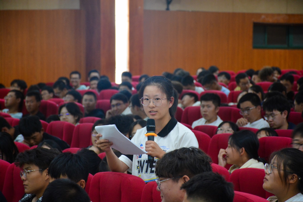 “人工智能与深层油气勘探的联系是什么?”“地质学未来的研究领域都有哪些”“我们学科与新能源是否有结合点?”“大学课堂应该如何做好自学?” 同学们认真做笔记,并积极提问,现场气氛热烈。操应长一一耐心做解答,既回应了同学们的困惑,也为同学们接下来的大学生活指明了方向。