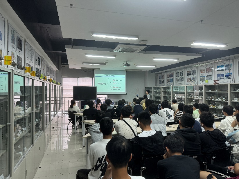 2022级资源勘查工程专业的海晴从专业学习、学生工作、志愿服务等方面分享了自己充实而忙碌的大学生活,向同学们传递了“只有荒凉的沙漠,没有荒凉的人生”的积极向上、坚韧不拔的拼搏精神,并寄语新生“做正确的事,不浪费、不摧残,力求不留遗憾”。2022级勘查技术与工程专业的张栩赫鼓励同学们要勇敢尝试、不断探索、迎难而上,做到脚踏实地和追求卓越。2021级本研一体班刘子月向同学们详细介绍了社会实践、入团入党、综合测评等方面的相关政策和个人经验,告诉大家要认真过好每一天、踏实做好每件事,珍惜时间、把握机会。2022级地质学专业高晓乐用朴实而真挚的语言将自己两年来的所见所闻娓娓道来,叮嘱同学们要秉承“勘探尖兵”精神,勤奋刻苦、认真钻研。2021级资源勘查工程专业的姚雪亮同学告诉大家大学生活要提前做好生涯规划,做好学习、科技竞赛、实践活动三方面的平衡。2020勘查技术与工程专业的郑凯尹同学向同学们强调了本科阶段课程学习和实践学习的重要性,鼓励大家要积极动手实践,将理论知识转换成解决问题的能力。