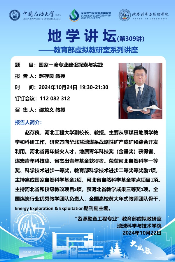 【地学讲坛第309讲】教育部虚拟教研室活动-关于赵存良教授《国家一流专业建设探索与实践》讲座的通知
