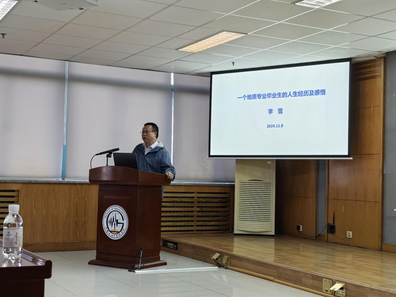 11月8日,全国高校“双带头人”教师党支部书记工作室、教育部"油气田开发地质课程虚拟教研室"、山东省示范性基层教学组织、地学院举办地学讲坛(第326讲)—大思政论坛专题讲座在工科C座757报告厅举行,优秀校友李雪教授级高工做客讲坛分享 “一个石油地质专业毕业生的人生感悟”的精彩报告。永利yl23411集团邱隆伟教授主持报告,资源勘查工程专业、本研一体班等2024级本科生及资源系教师130余人参加报告会。