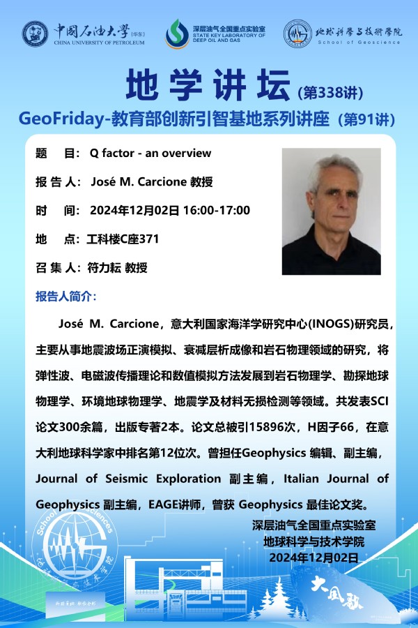 【地学讲坛第338讲】关于 José M. Carcione 教授 《Q factor-an overview》学术报告的通知