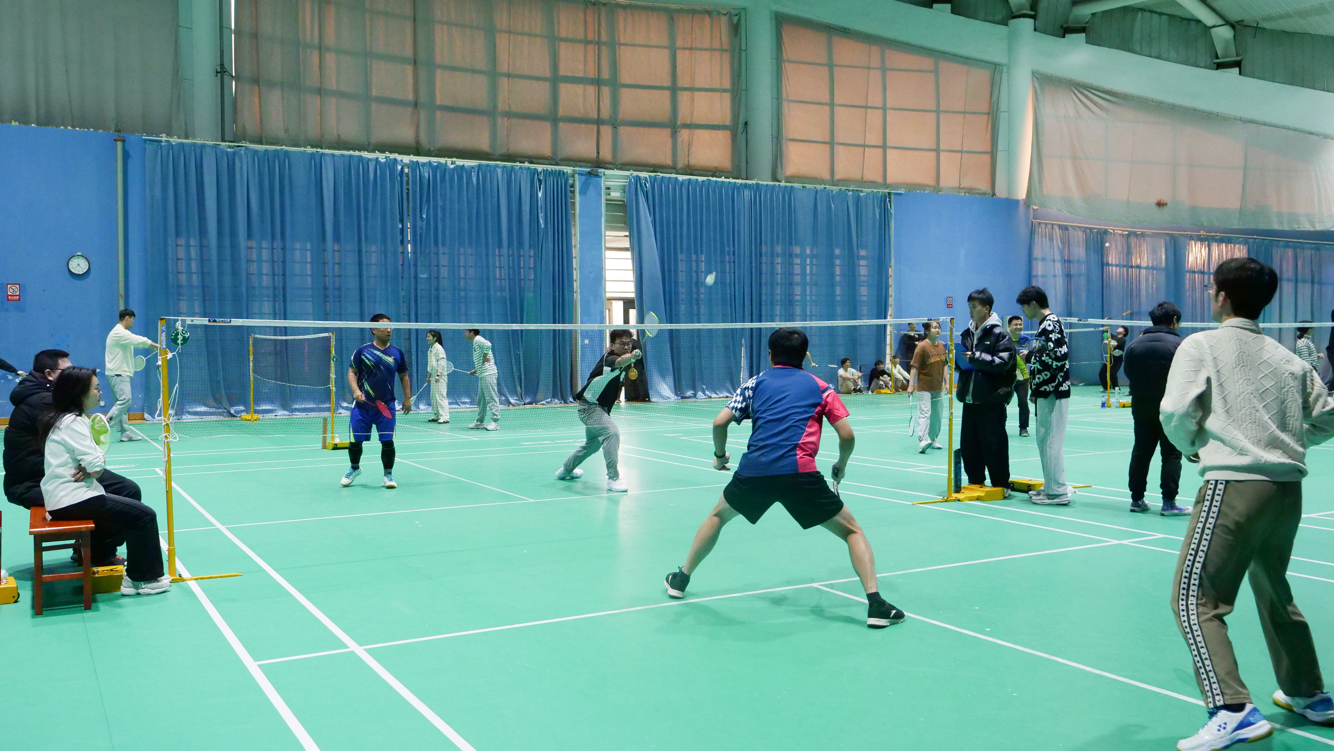 19日,“师生勘探+”之“师生杯”羽毛球赛在体育馆举办。来自不同专业的六支师生队伍齐聚一堂,共同开启这场热血沸腾的羽球征途。