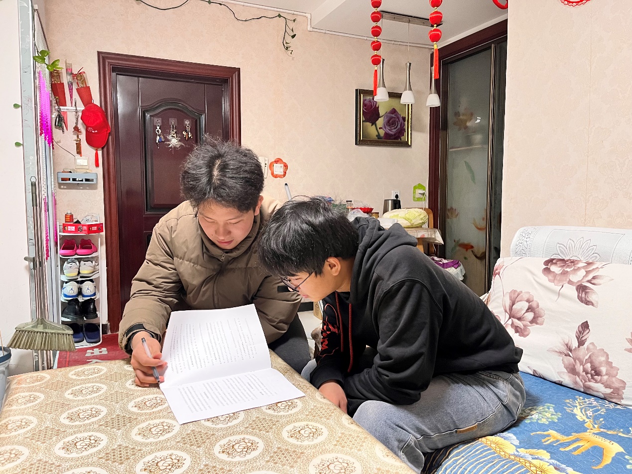 在河北省衡水市武邑县花园路街道办事处,地质2101班张庆勋与高三学生郭同学交流,宣讲资助政策,帮助学生和家庭明确申请流程、标准及资助的实际意义。“感谢庆勋学长让我了解到大学资助政策,这让我更有信心追求自己心仪的大学。”郭同学表示。