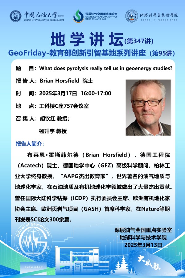 【地学讲坛第347讲】关于 Brian Horsfield 院士《What does pyrolysis really tell us in geoenergy studies》学术报告的通知