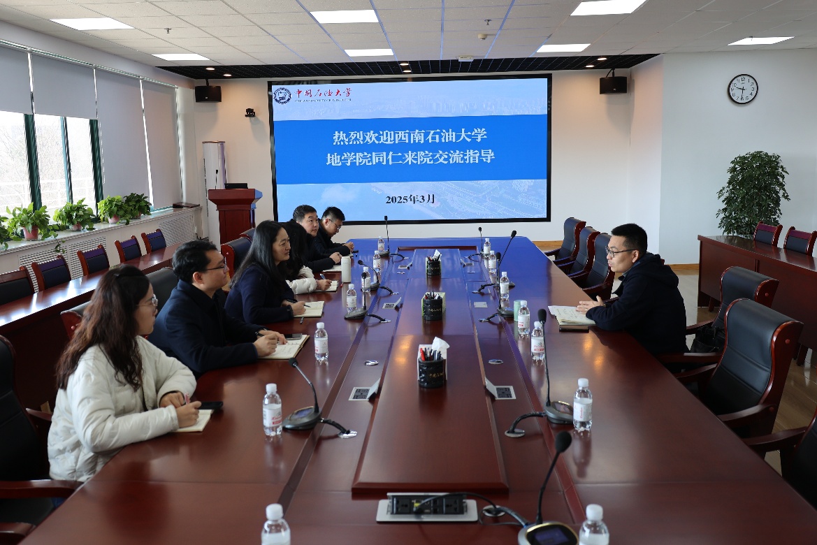 张勇对我院的热情接待表示感谢,对我院学生思想政治教育工作所取得的成绩给予高度评价,并具体介绍了西南石油大学地科学院的“五化五维”学生工作体系。