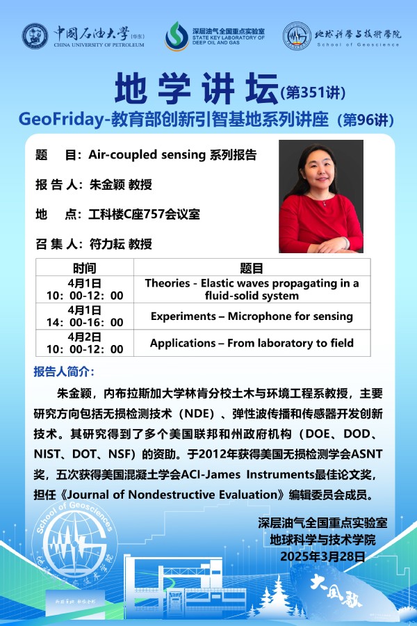 【地学讲坛第351讲】关于朱金颖 教授《Air-coupled sensing 》系列学术报告的通知