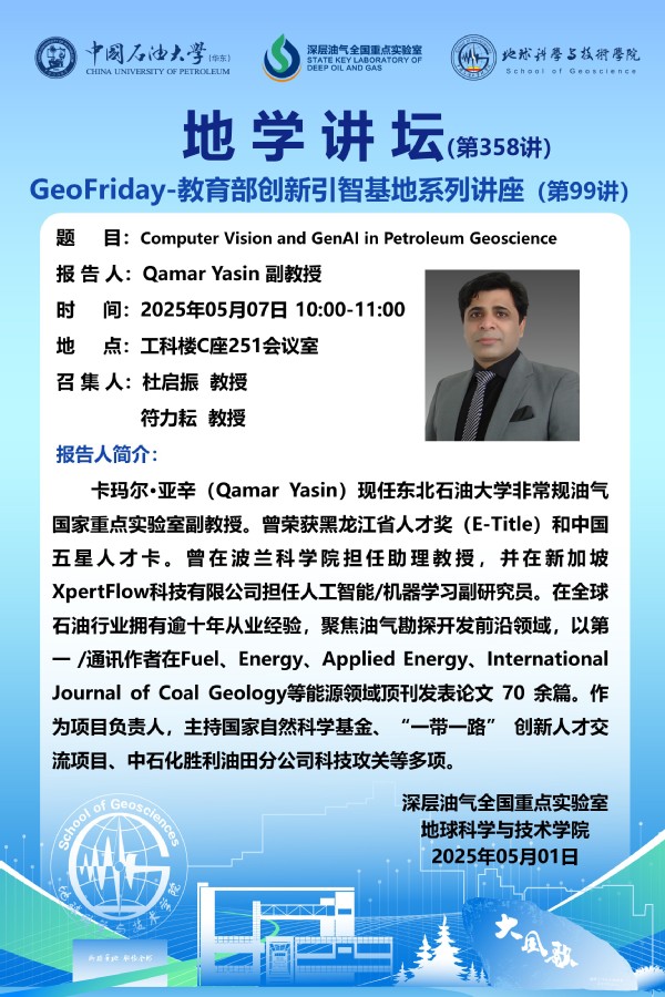 【地学讲坛第358讲】关于Qamar Yasin 副教授《Computer Vision and GenAI in Petroleum Geoscience》学术报告的通知