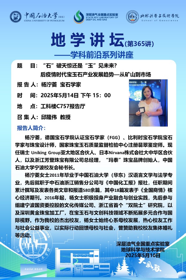 【地学讲坛第365讲】关于 杨泞菱 《“石”破天惊还是“玉”见未来?后疫情时代宝玉石产业发展趋势—从矿山到市场》学术报告的通知