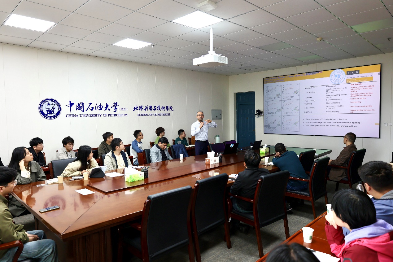报告结束后,Mehdi Ostadhassan教授和Qamar Yasin博士与在场的师生进行了深入的学术交流,针对“如何考虑结构特性和力学特性在岩石破碎过程中的作用”、“如何高效找到合适的网络进行实际工作”和“如何进一步打开人工智能网络的‘黑盒子’”等问题展开了热烈的讨论。