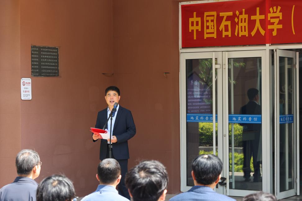 随后,牛庆玮书记发表讲话。他对西海岸新区应急管理局、防震减灾中心在实践育人工作上给予学校的大力支持表示衷心感谢。牛书记指出,地震科普实践基地的建成,为石大学子提供了一个专业化、现代化且沉浸式的防震减灾实践教育平台。此次共建合作不仅是深化 “校政合作” 的关键举措,更是积极响应国家 “教育强国、科技强国、人才强国” 战略的生动实践,对培养具有社会责任感和实践能力的高素质人才具有重要意义。