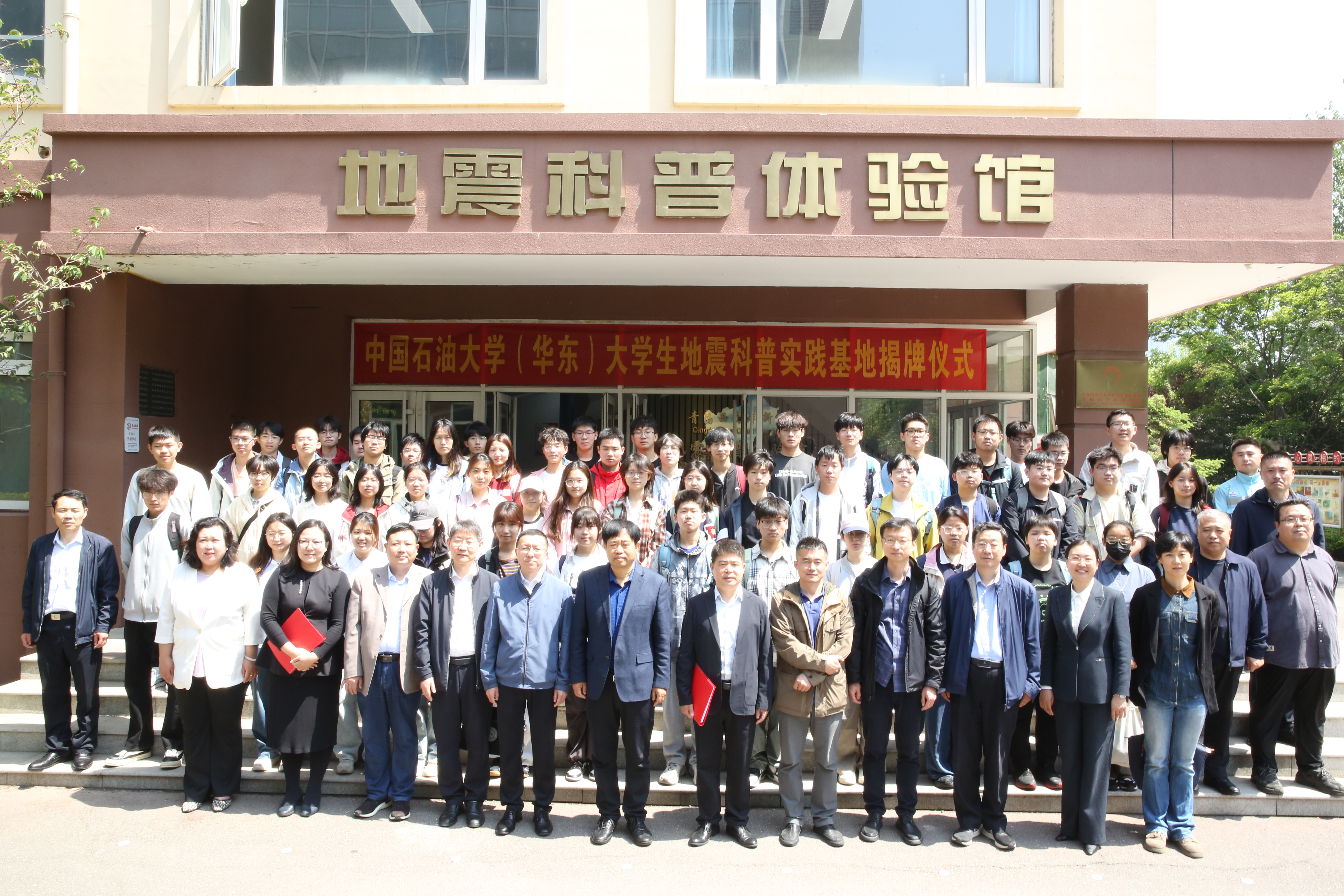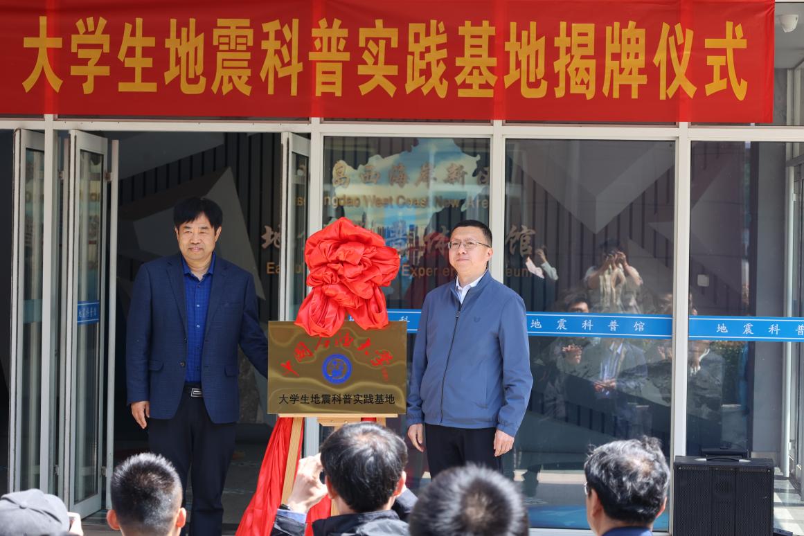 5 月 12 日,在第 17 个全国防震减灾日当天,yL23411永利集团大学生地震科普实践基地揭牌仪式在青岛西海岸新区地震科普体验馆顺利举行。永利yl23411集团党委书记牛庆玮、地球物理系主任张繁昌、地球物理系党支部书记张凯等教师代表,西海岸新区应急管理局(地震局)党委书记、局长沈久波,西海岸新区教育和体育局三级调研员、机关党委专职副书记周加勇,西海岸新区防震减灾中心主任殷文汇,青岛经济技术开发区第四中学书记王志娥,海丽雅集团副总经理、青岛海丽应急安全技术有限公司总经理郑文娇,以及西海岸新区防震减灾中心工作人员、青岛海丽应急技术有限公司相关负责同志和地球物理学 24 级学生等共同出席了此次揭牌仪式。