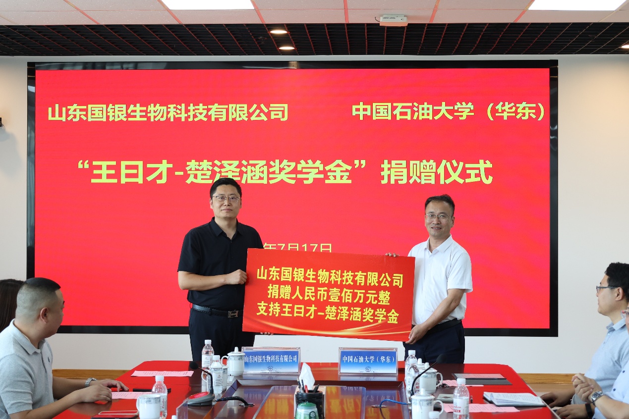 山东国银生物科技有限公司是一家以科技创新为驱动、以人才创新发展为根源的高新技术企业,以“科技报国、产业兴邦、金融服务实体”为使命,打造集研发、生产、服务于一体的生物科技全产业链平台,始终将企业发展融入国家战略需求与社会进步的大局,推动行业进步与社会可持续发展。本次山东国银生物科技有限公司共捐资100万元,用于支持油气地学领域的人才培养。