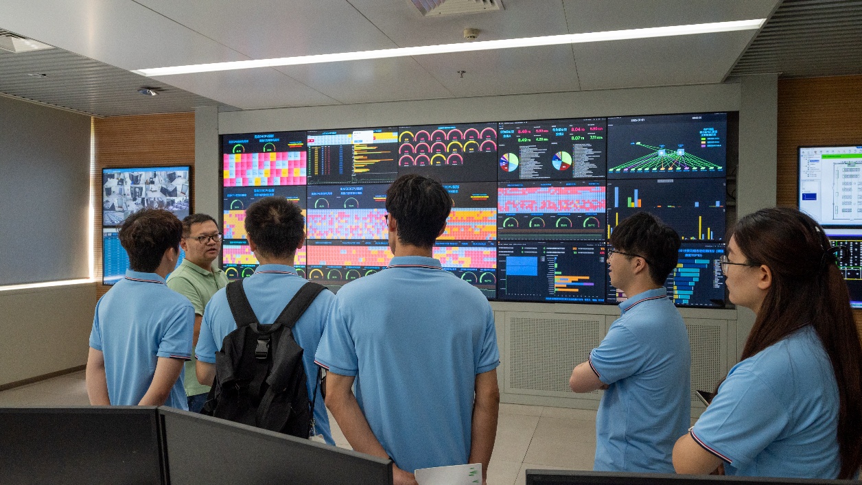 在中海油服物探研究院成果转化中心,技术人员通过实时跳动的渤海湾三维地震数据模型,向实践团展示自主研发的海上采集装备系统与智能化运营成果:依托畅通的PLM研发系统、物探生产运营系统和远程支持系统,油田实现了海陆数据的实时联动,有力保障了海上油气勘探。驻足地震数据处理与解释平台,成员们亲眼见证原始信号通过先进算法转化为清晰的地层剖面——智能化正推动其精度实现跨越式提升。