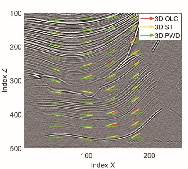 将该方法应用于实际三维地震数据(图1),结果显示局部倾角能够准确刻画断层边界与层理变化,在构造解释中表现突出。该技术适用于大规模并行计算环境,在现有地震处理流程中易集成且额外计算开销极低,具有显著工程应用价值。