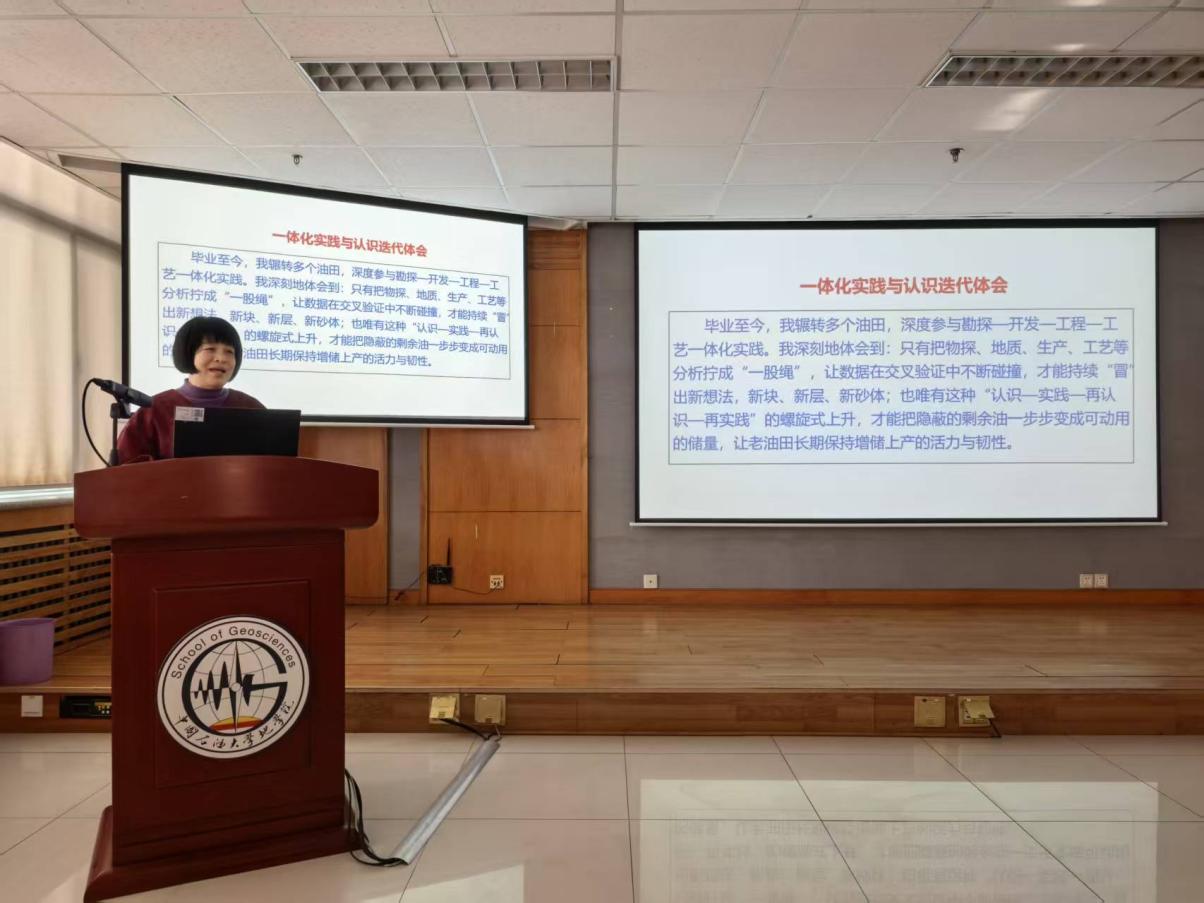 2025 年 12 月 10 日,地学讲坛第 421 讲在工科 C757学术报告厅顺利举行。特邀李雪教授级高级工程师作《地质再认识:老油田隐蔽油藏→可动储量》的专题学术报告,60余师生、科研人员齐聚现场,共同参与学术交流。报告由永利yl23411集团邱隆伟教授、张立强教授共同主持。