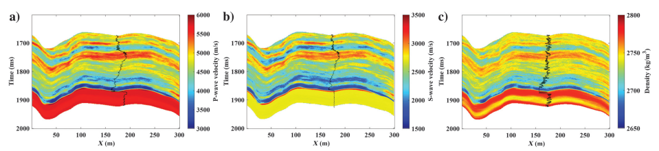 (a)纵波速度;(b)横波速度;(c)密度