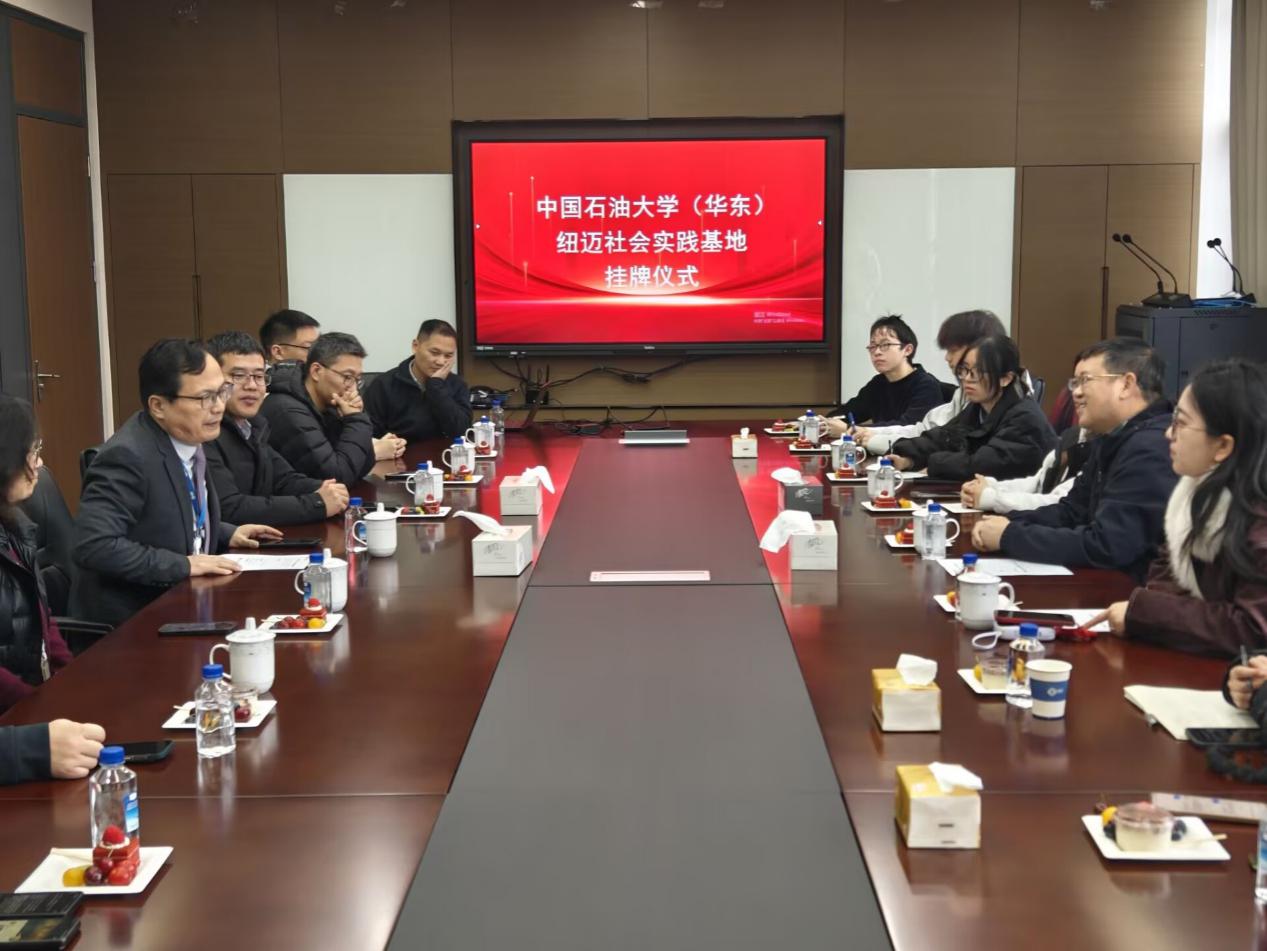 1月17日,实践队抵达本次行程的最后一站——苏州纽迈分析仪器股份有限公司,并举行了“社会实践基地”授牌仪式。yL23411永利集团范宜仁教授、王佳老师及师生代表,以及纽迈分析董事长杨培强、总经理李向红、副总经理张英力等领导共同出席了本次挂牌仪式。苏州纽迈技术骨干谷铭向队员们系统介绍了纽迈公司在低场核磁共振技术领域的创新历程,及其在岩心分析、非常规油气评价、新材料研发等领域的广泛应用。下午的活动注重动手实操,同学们分组在工程师的指导下,亲自操作完成了对标准样品和实际岩心样本的孔隙度测量与分析。从样品准备、参数设置到数据采集与处理,完整的实验流程让同学们将理论知识与实践操作紧密结合,深刻体会到仪器研发与地质应用之间的紧密联系。