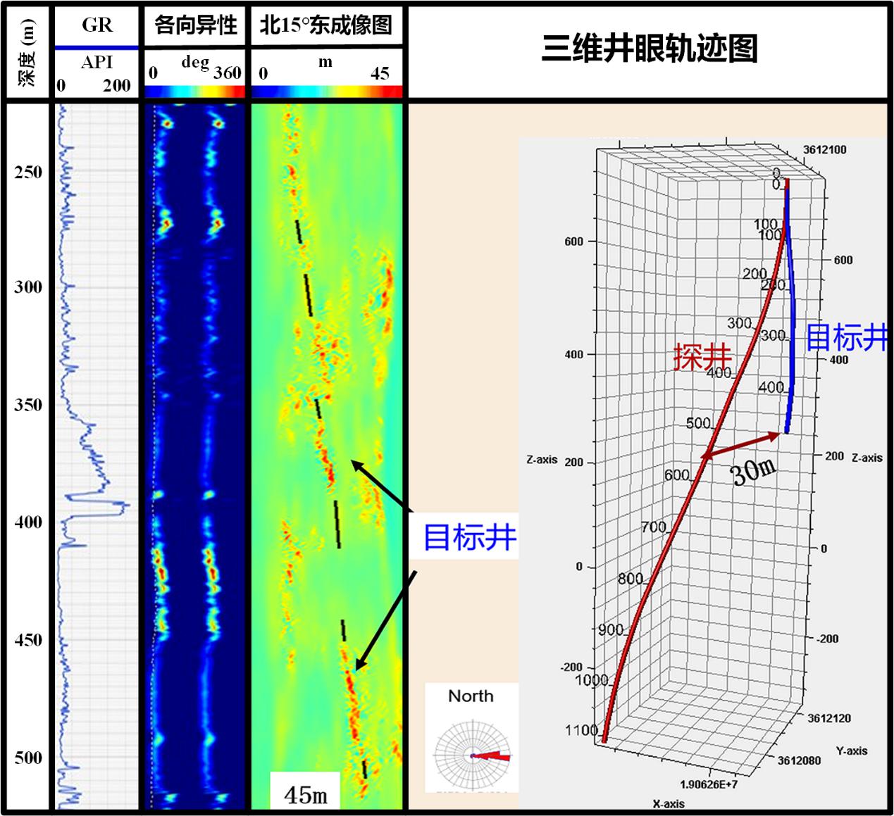 图2.孔渗地层中偶极SH横波邻井成像实例